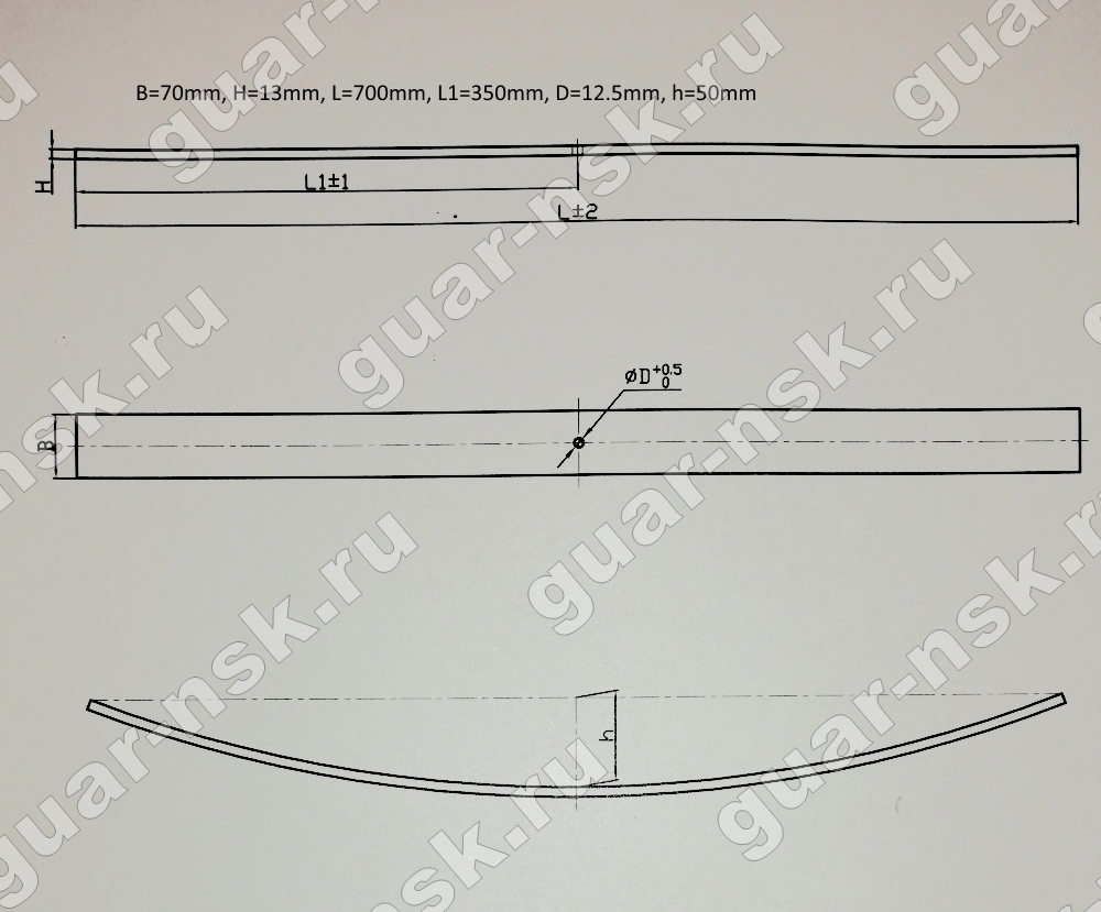 Лист рессорный 13х70х0700H с центр. отверстием