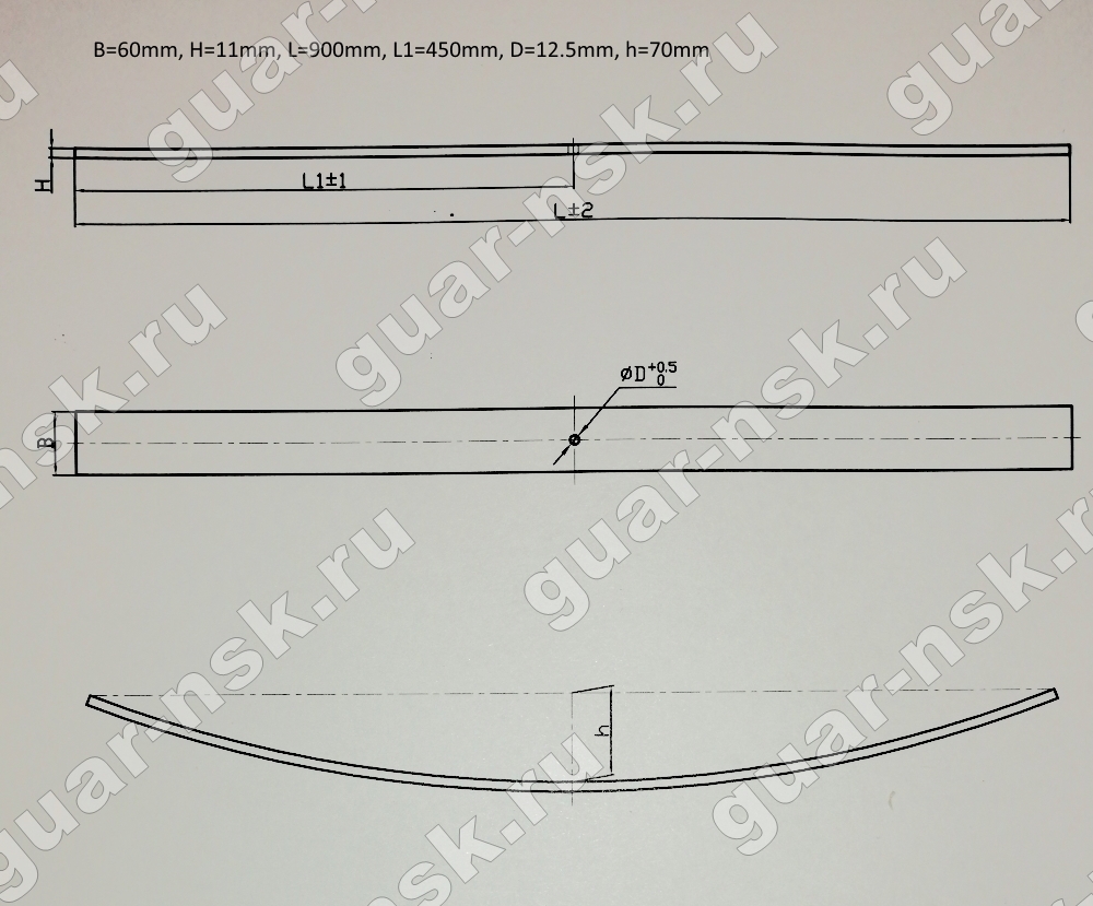 Лист рессорный 11х60х0900H с центр. отверстием