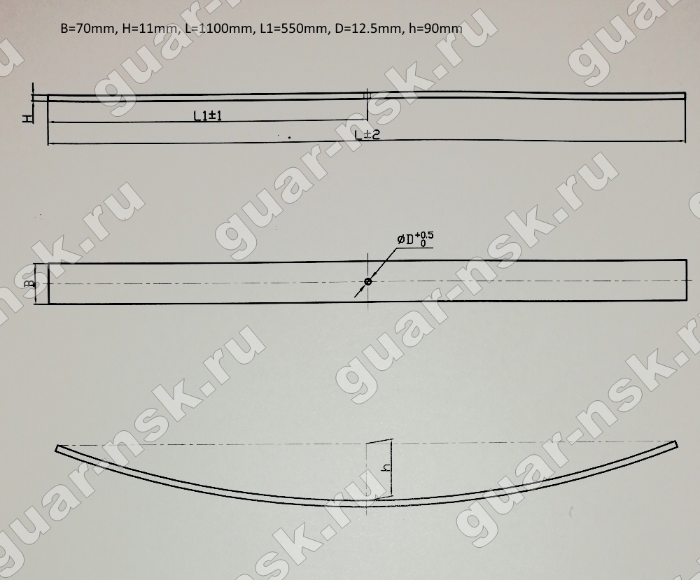 Лист рессорный 11х70х1100H с центр. отверстием