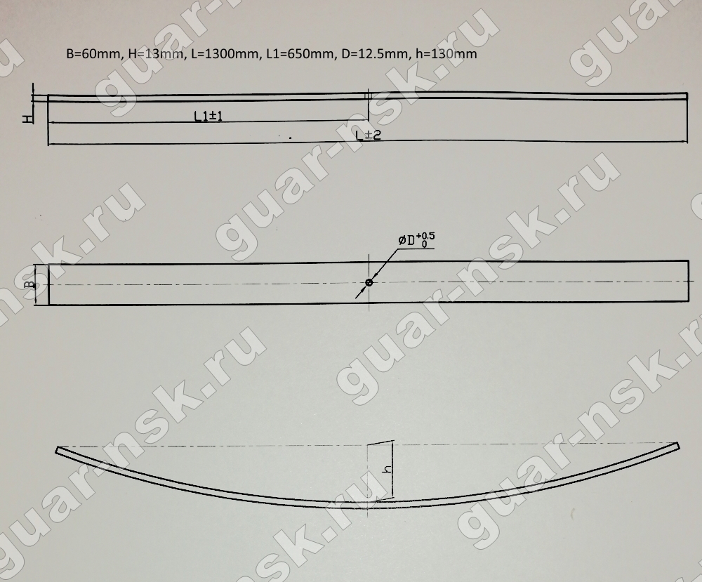 Лист рессорный 13х60х1300H с центр. отверстием