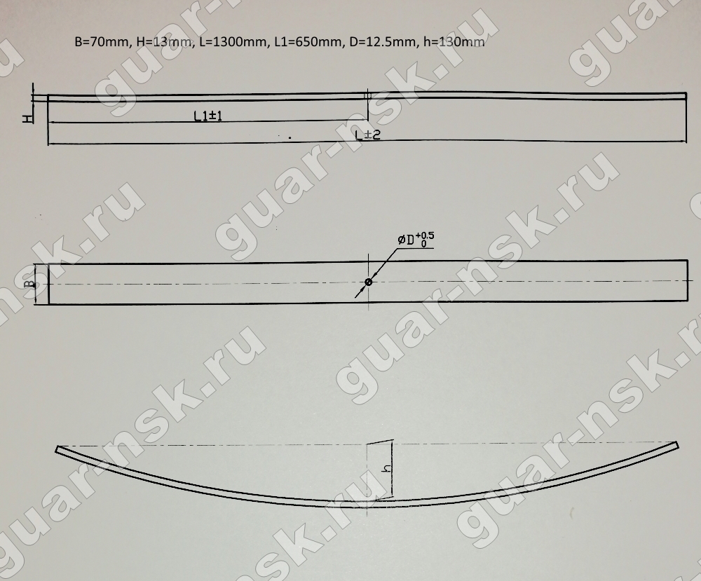 Лист рессорный 13х70х1300H с центр. отверстием