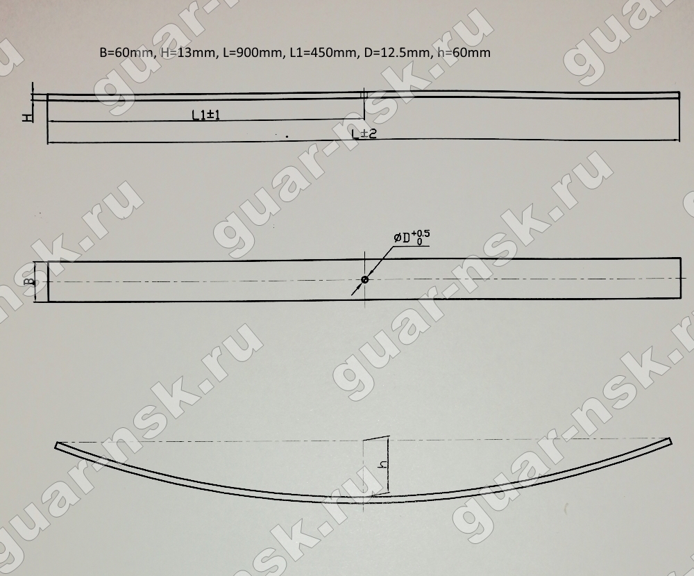 Лист рессорный 13х60х0900H с центр. отверстием